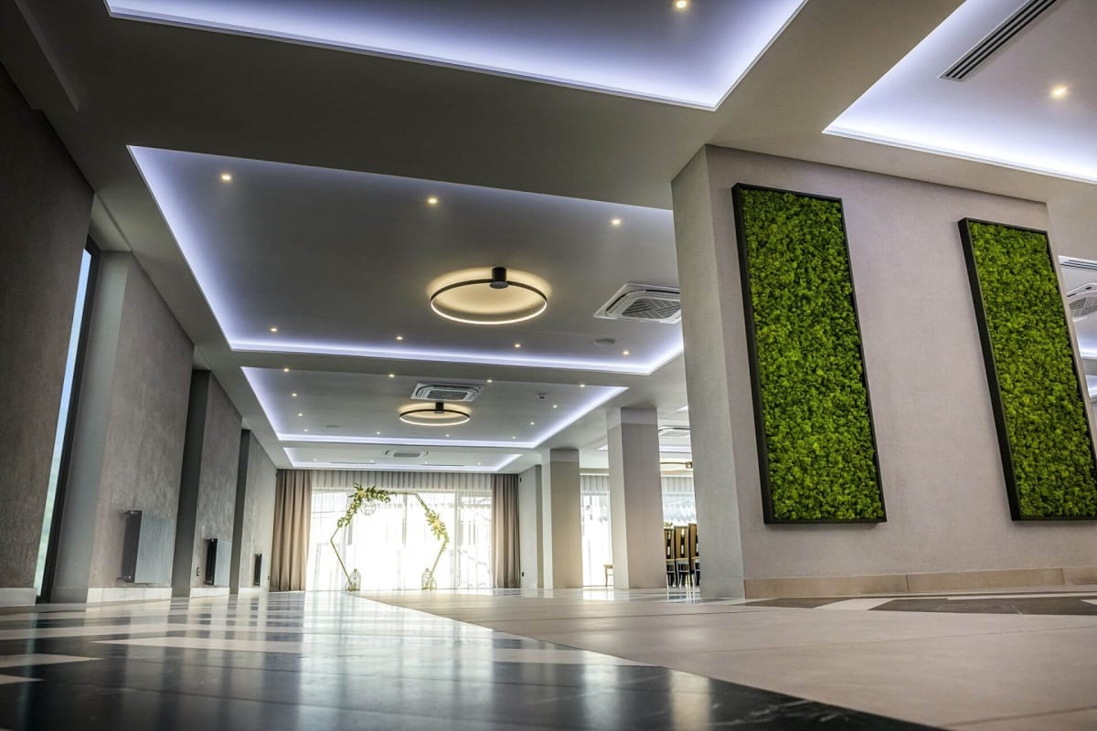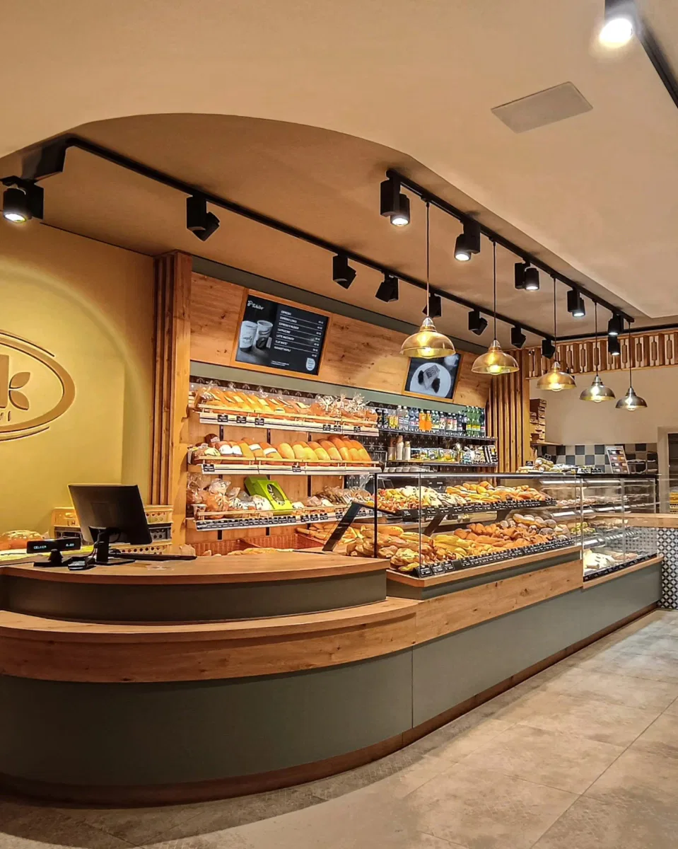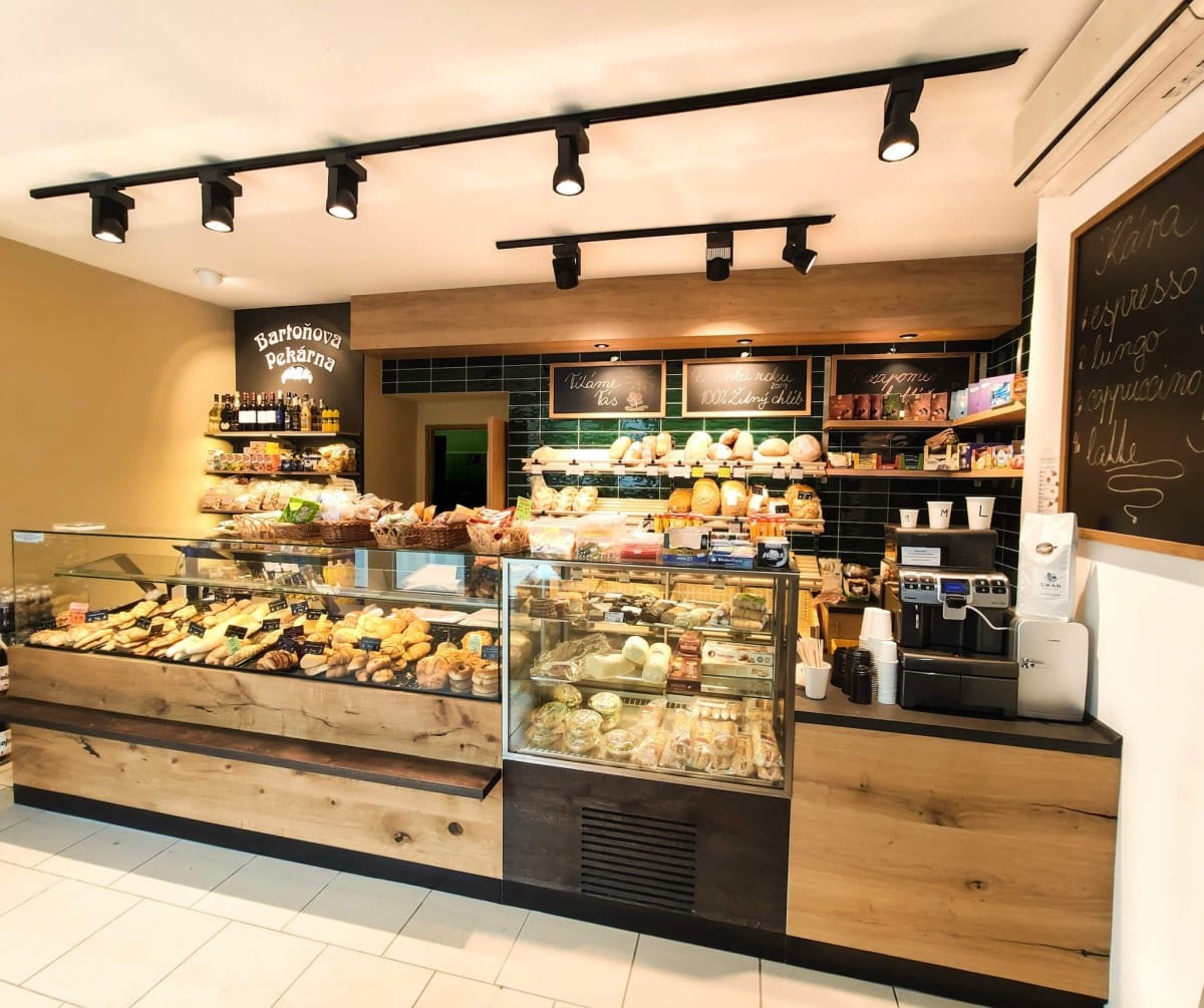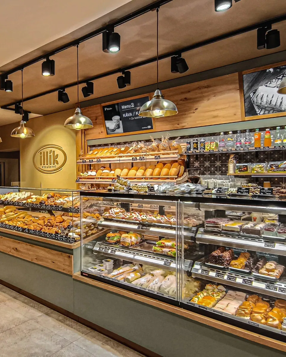 Naše realizace osvětlení zahrnují širokou škálu komerčních prostor. Specializujeme se na návrh a instalaci osvětlení pro pekařství, řeznictví, obchody, kanceláře, hotely, průmyslové haly, sklady i banky.